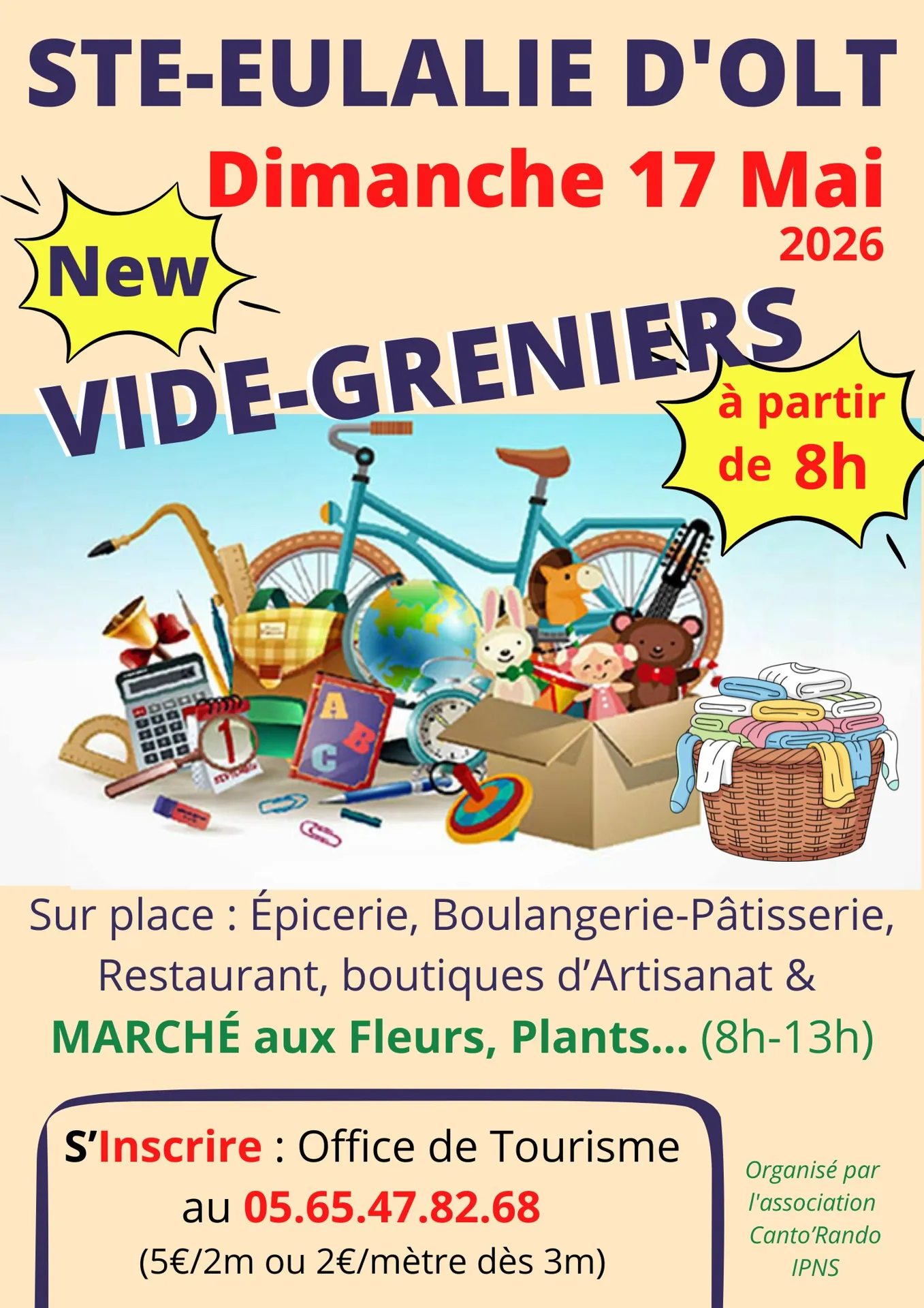 Inscription au vide-greniers à partir de 2 mètres: 05 65 47 82 68