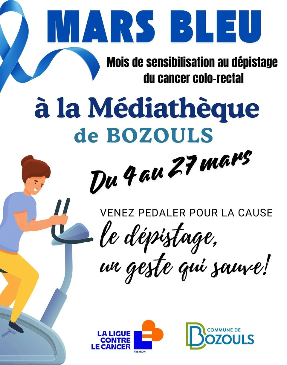 Venez pédaler à la médiathèque André Baudon à l’occasion de Mars bleu, le mois du dépistage du cancer colo-rectal, avec le Comité de l’Aveyron de la Ligue contre le cancer.