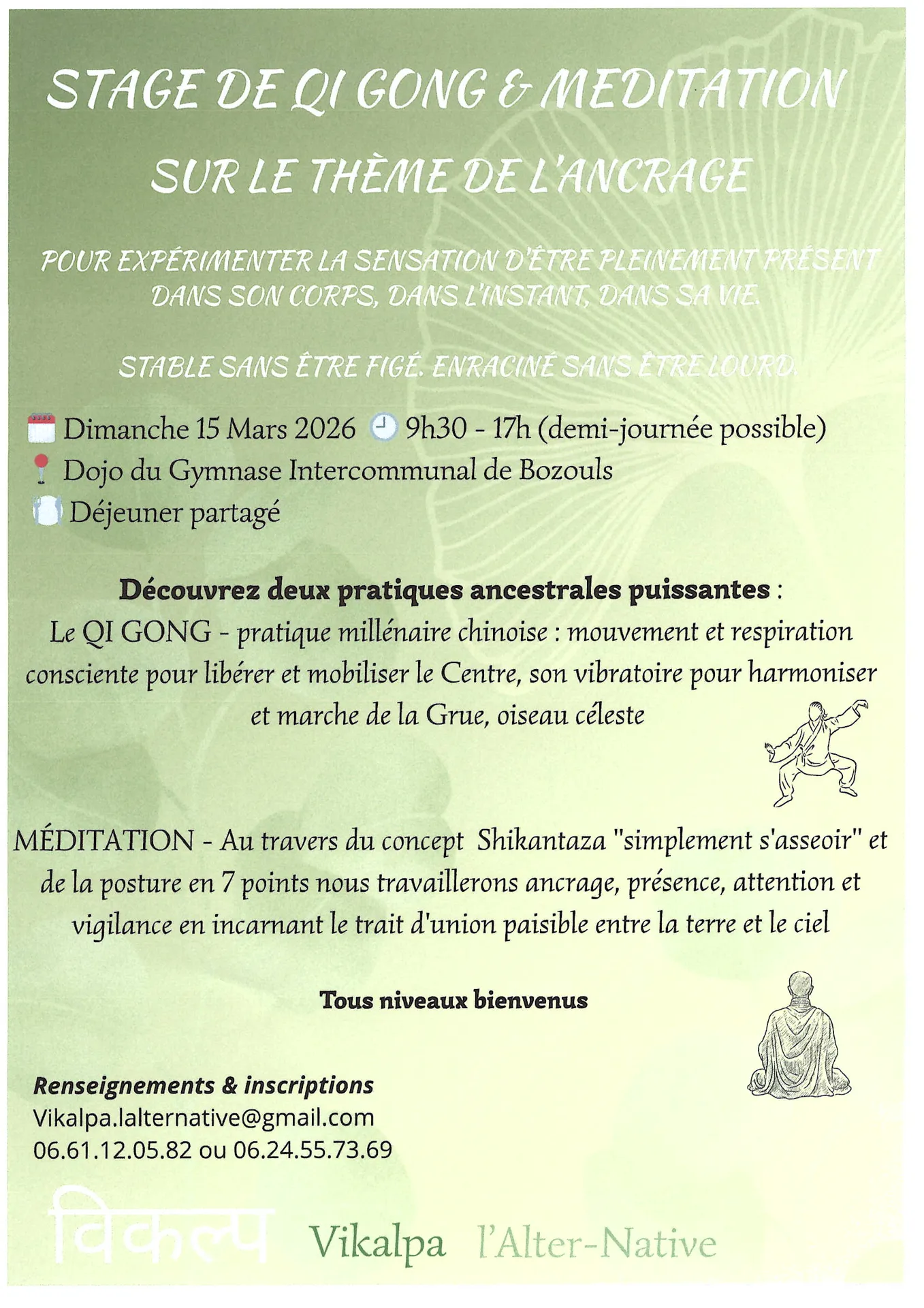 Offrez-vous une pause avec l’association Vikalpa ! Stage sur le thème de l’ancrageTous niveaux – débutants bienvenus: La différence se fait au niveau de l’expérience vécue par chacun!
